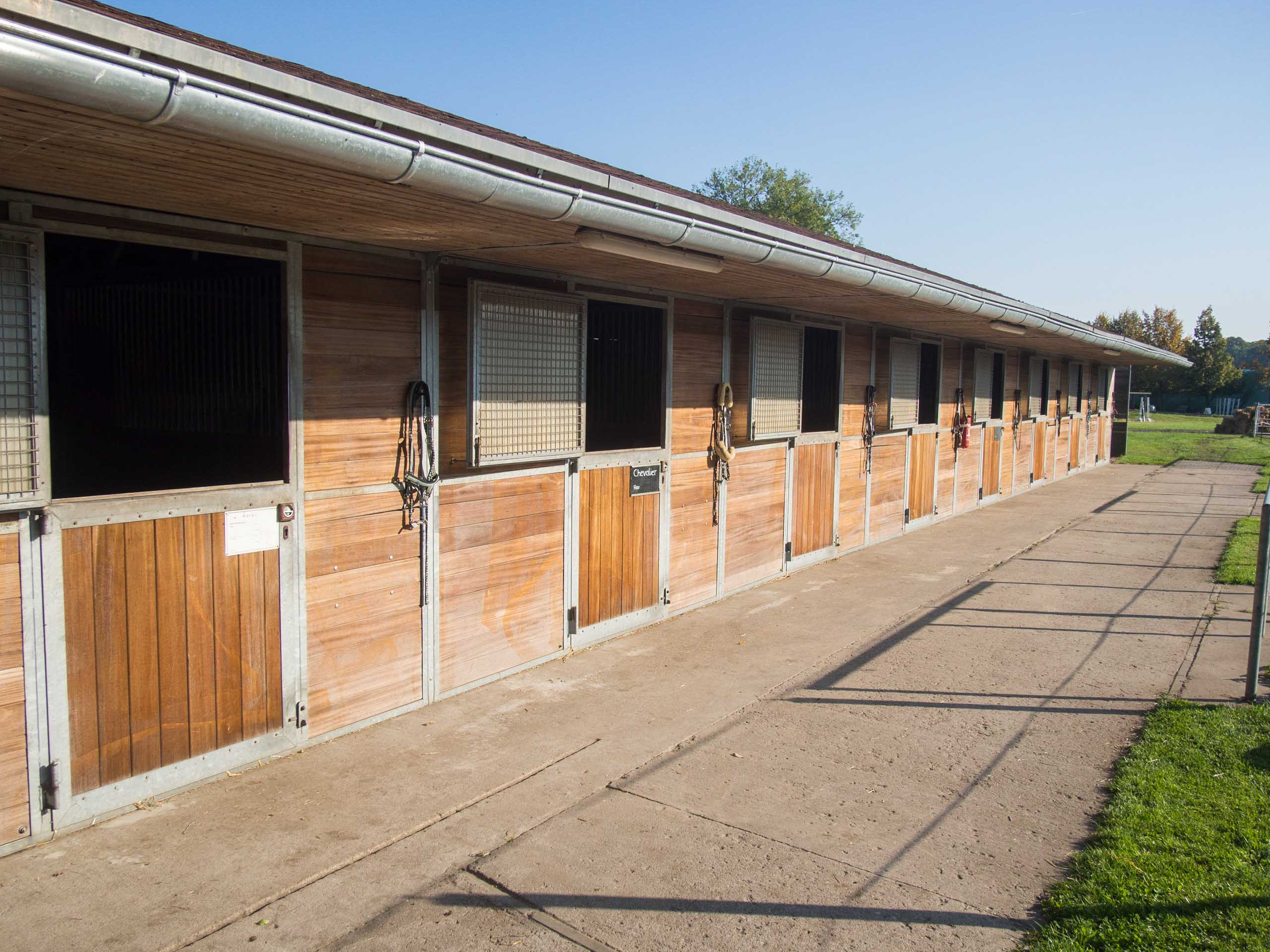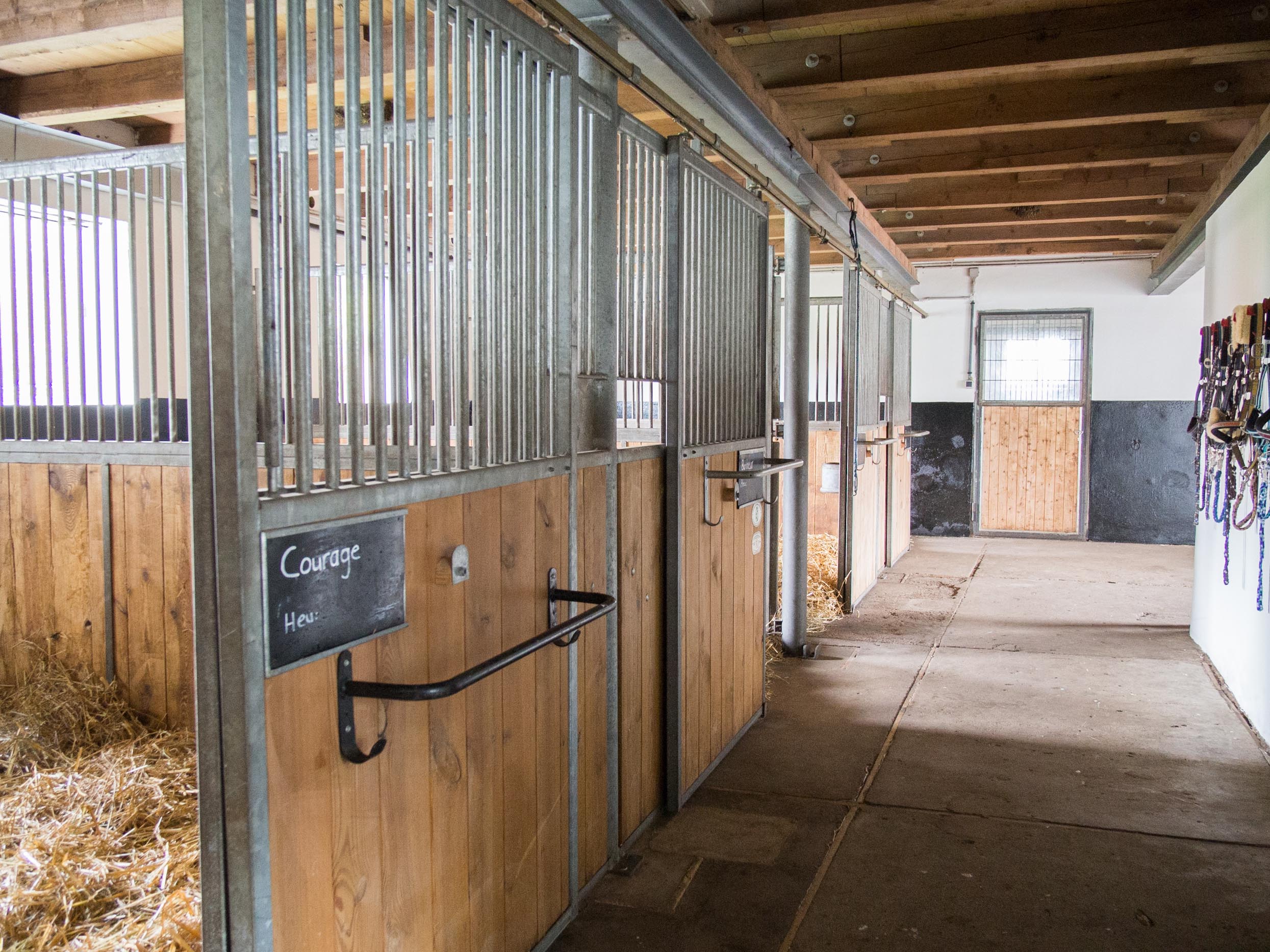 Die Anlage besitzt vier Stallgebäude, in denen jeweils max. neun Boxen (Maße: 3×3- 4×6 m) sind, sodass ausreichend Ruhe im Stall gewährleistet ist. Zusätzlich sorgen große Fenster für viel Licht und eine angenehme Belüftung im Stall. Bei Bedarf können auch elektische Rolltore oder Türen mit Fenstern geschlossen werden, sodass Zugluft oder Kälte verhindert wird.